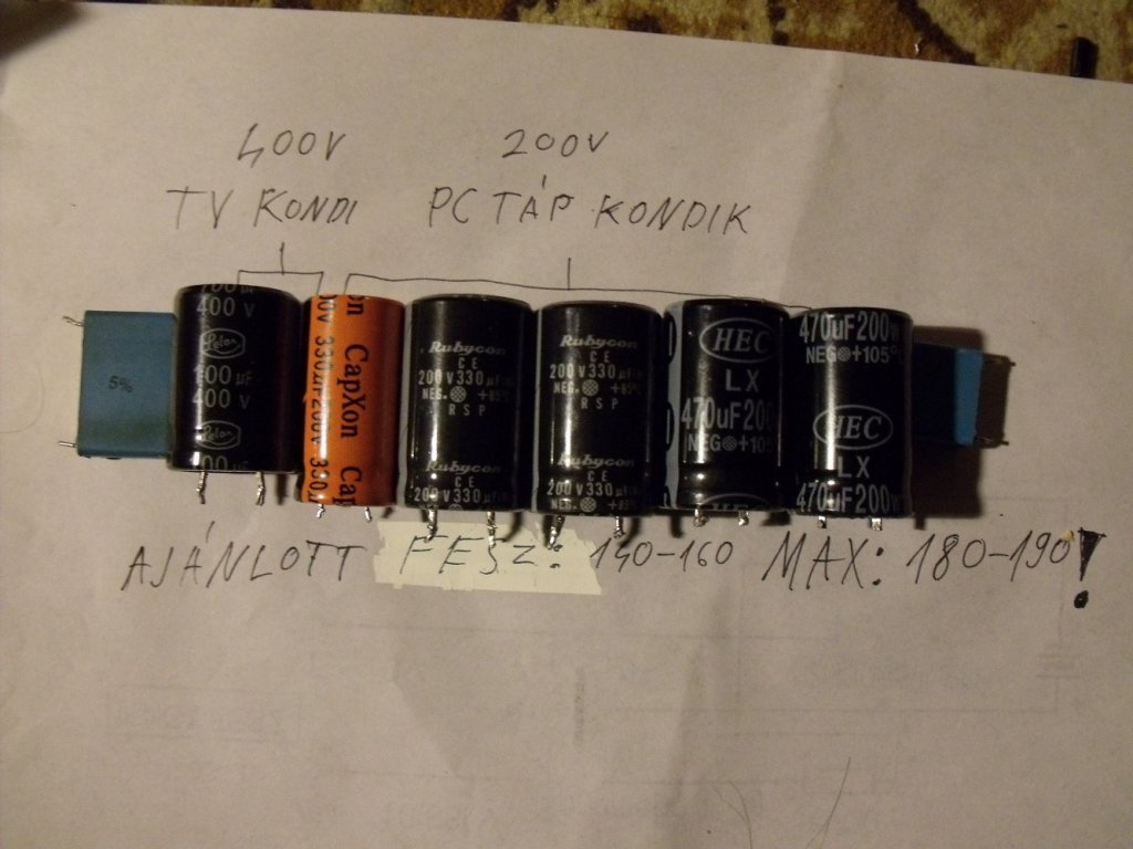 Nos még egyszer meg porálom, mivel a kodibankom egy komolyabb. Java rész 200V és 330µF-470uF, ezeket PC tápból turkáltam ki (neh.. most meg nem fogok tudni labortápot készíteni. o.O), valamint egy TV táp kondi.