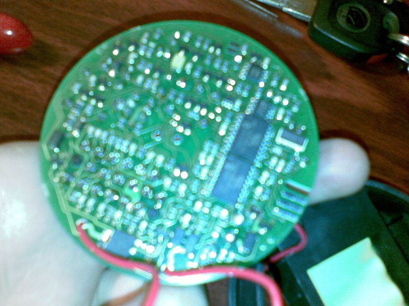 A tekercs maga bele van öntve a műanyag gyűrűbe ennek csak két kivezetése látszik.Innen az kulcs "immó ID-t" a zöld - fekete csavart érpár "viszi" az órához.Ott a proci összehasonlítja a kulcs adatait egy eeprom tartalommal,és ha egyezik akkor "kinyitja " a motorvezérlőt,és indítható az autó.