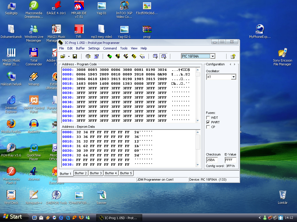 ja, és kiegészítettem a program eljét mert úgy nem akarta beleírni a chipbe csak miután módosítottam. Úgyis jól írtam be alulra az adatokat az eeprom mezőbe? üdv |