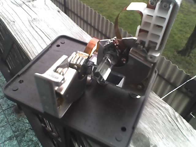 A szedőfej a tehetetlensége miatt mindig középre áll vissza.Feltéve ha teljesen ki van berhelve belőle minden.A kis fehér pozicionáló a hdd rész...