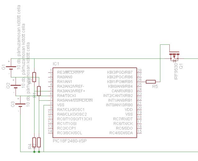 Valószínű a feszosztós megoldást választom, mert nem egészen olyan egyszerű a kapcsolás, mint amit leírtam. 3 sorba kapcsolt akku van viszont 1-1-el még 10-12 darab van párhuzamosan kötve. Akkufelügyeletet szeretnék készíteni belőle, tehát a PIC-nek csak 2 szintet kell figyelnie. Tehát akkor az első cellánál csak rá kell kötnöm, a másodiknál 1:1 arányú ellenállást betenni és a harmadiknál 2:1 arányút. Ha ez igy stimmel akkor már csak a cellákkal sorba kötött mosfet gate-jére kéne valahogy 10 voltot kapcsolni. Ebbe tudna valaki segíteni? Plusz, ha a sorba kötött fet Rds(on)-on átfolyó áramot szeretném megmérni, akkor az jó megoldás, ha feszosztót teszek a drain és az eredeti nulla pont közé, meg a source és nulla közé és, ha a két értéket kivonom egymásból és megszorzom Rds(on)-nal akkor az megadná nem?