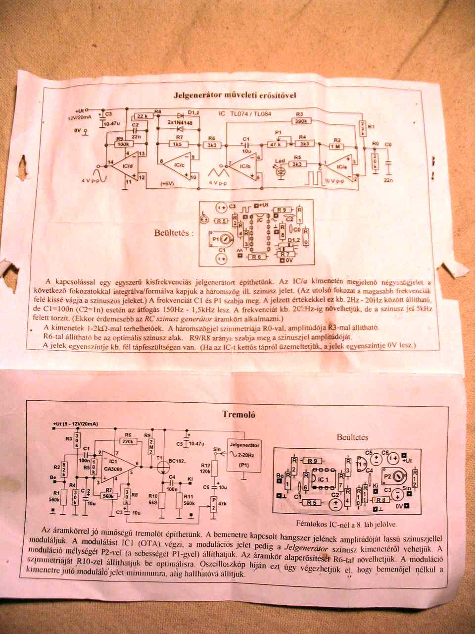 Azért írok, mert egy tavaj épített erősítőm előfokja elég egyengécske, teljes húrkipengetésnél mintha "lefulladna" elmegy a hangja. Ezt azóta csinálja, amióta nem strat gitárral tolom rajta. Amúgy is újra akartam építeni az előfokozatot valami keményebb torzítású efektel fűszerezve. Elkezdtem kísérletezni újfajta torzítókkal, de még nem sikerült elég METÁLT gyártani. :vigyor1: Tudnátok-e segíteni abban, hogy 2db ECC83 vagy ECC85 felhasználásával (inkább ECC85 mert abból van egy zsáknyi) hogy lehetne valami HEAVY METAL cuccost építeni? A tápfesz az adott +212V Mellékeltem képet az erősítőről, és a torzító bétájáról is. Tettem fel hangmintát is a torzítóról. Eddig ez volt a legütősebb amit csővel megtudtam valósítani. Csak nekem olyan kéne amivel lehet "visíttatni" a gitárt. Ennek eddig csak annyi baja volt hogy kicsit magas volt az alapzaja, de feltételezem azért is lehet ez mert térben szereltem a cuccost, de ha diodák nincsenek a kimeneten akkor nincs zaja.Az alap elvárás az lenne a torzítótól, hogy lehessen Overdrive/Distortion üzemmódban működtetni, és lehessen szabályozni a torzítást. Az erősítőnek 2 csatornája van A és B az A lenne a torzított OD/DIST. csatorna és a B lenne a tiszta vagy Overdrive.