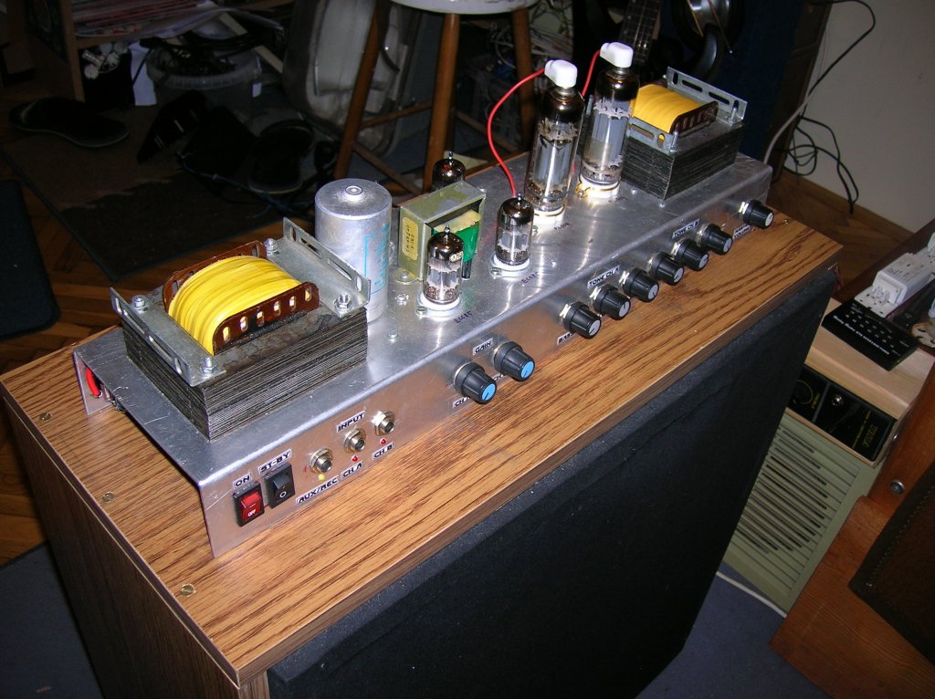 Ha végre elkészülök a bass-kombómmal, akkor nekiállok egy majdnem fullcsöves gitárfejnek is. (az is kapcsolótápos lesz) Havertól kaptam 6p3sz-e csöveket (ruszki 6L6) és ezekből szeretnék valami jóféle dolgot építeni. Egyenlőre a lehetséges kapcsolásokat gyüjtögetem hozzá.