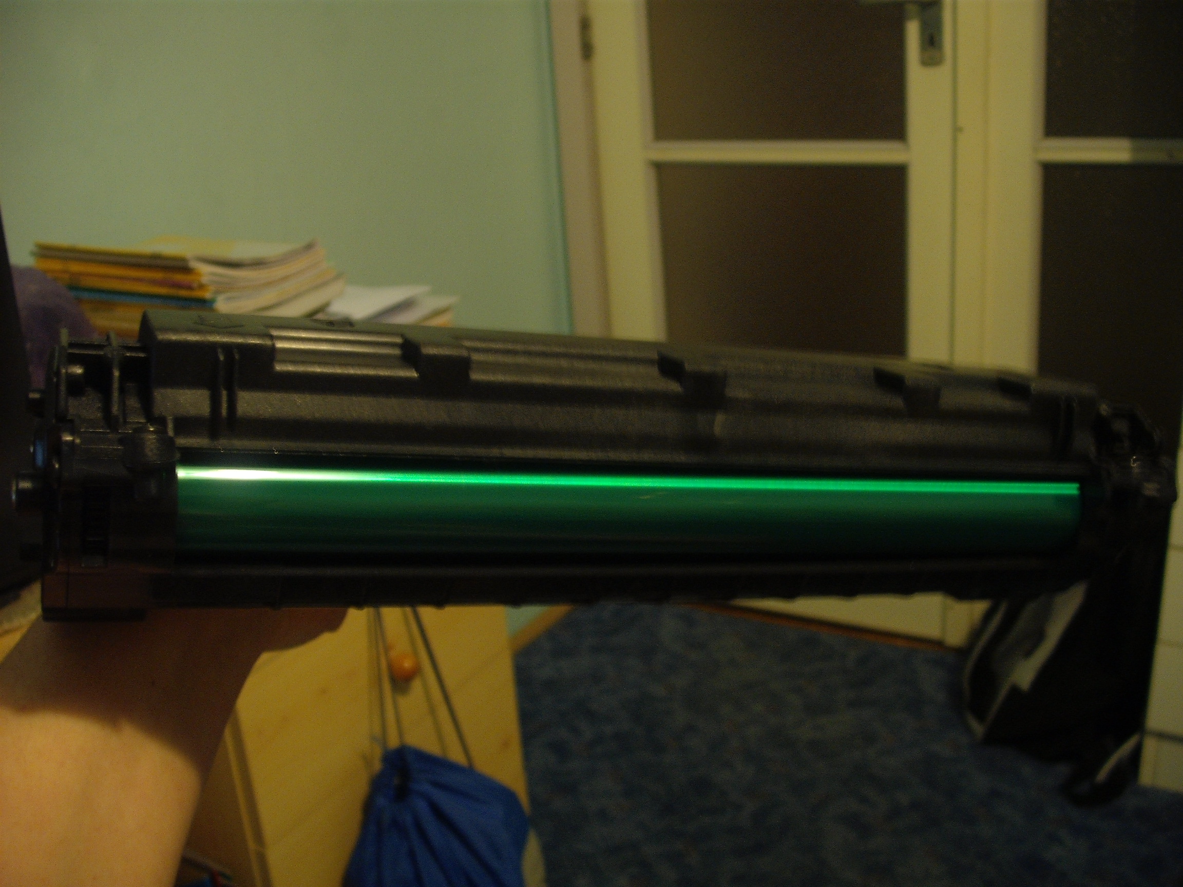Az a "zöld domború" az egy henger, sőt, az a fényhenger. Azt tisztítani elég kényes dolog, - OPC henger tisztítóval lehet csak. (Nem jó a közönséges alkohol!)