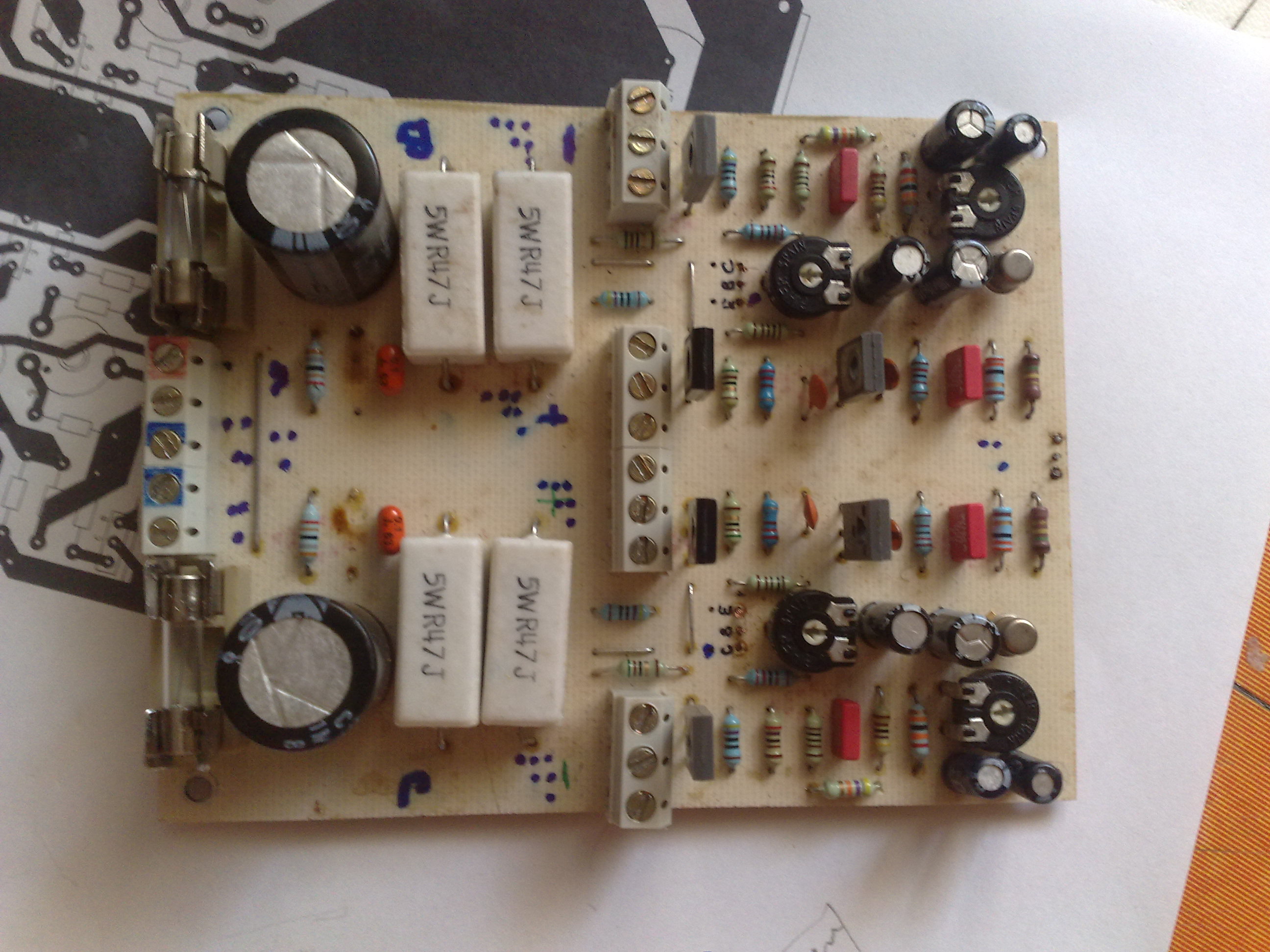 Ek kis segítséget szeretnék kérni tőletek .Van egy házi gyártmányú erőködőm amit az idő vas foga egy picit megrágott már (a nyákok nem voltak korrózió ellen védve) és új nyákot csináltam meg kicseréltem benne az összes alkatrészt és most az a problémám ,hogy csak recseg meg az egyik oldalon van egy tranzisztor ami melegszik azonnal ahogy bekapcsolom (vasalni lehetne vele) .teszek fel néhány képet első az eredeti felülről 2 eredeti alulról 3 új alulról 4 új beépítve.nem tudjátok mi lehet a probléma? ha kell még kép szívesen teszek fel róla csak légyszíves segítsetek mert a monitor hangszórótól már égnek áll a hajam. Amúgy az erősítő üzemelt előtte sacc 10 évig . segítségeteket előre is köszönöm