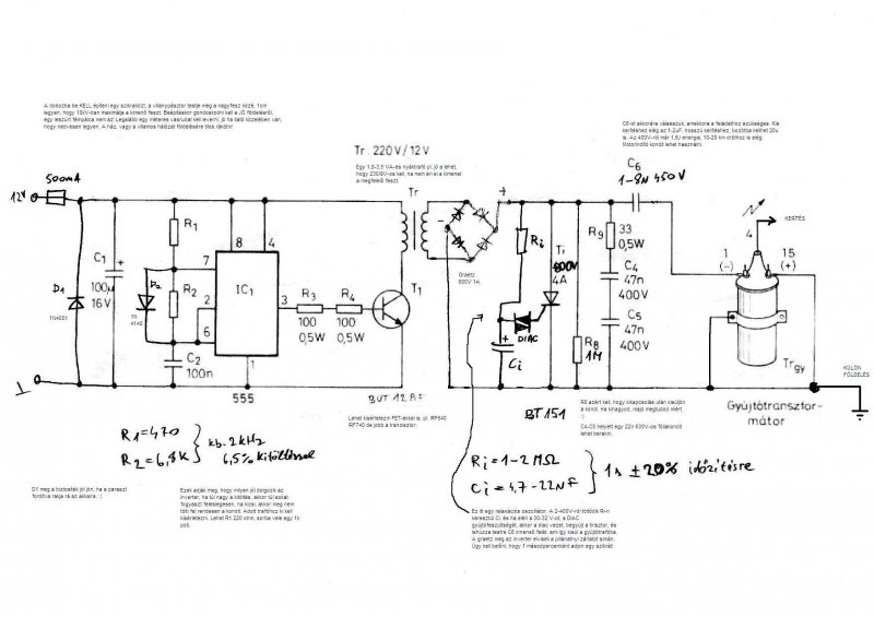 DE ENNÉL A KAPCSOLÁSNÁL NEM LEHET ALKALMAZNI AUTÓ GY TRAFÓT.mert a primer és szekunder tekercs egyik kivezetése közös igy fenn ál a veszély hogy a fázis ki megy a karámra. Itt sak olyan trafót lehet használni aminek p és sz oldala galvanikussan el van választva!!