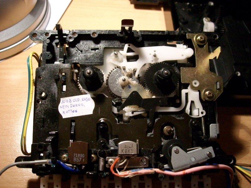 Így végül kitaláltam azt a megoldást, hogy az előlapra belülről ragasztottam papírcsíkokat, amik megtartják a fogaskereket. Elég sokáig tartott, mert először filccel próbálkoztam, ami túl vastag volt, és ettől teljesen leállt a mechanika, ez után pedig óvatosan, egyenként ragasztottam fel a papírdarabokat. De bevált az ötlet, nem került egy fillérbe sem, és azóta is hibátlanul működik a magnó (mondjuk néha csinált olyat, hogy a szalagvégen nem csak megállt, hanem ki is nyitotta a kazettaajtót, amihez lehet köze ennek a papír alátétnek).