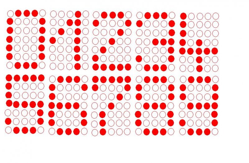 A pontmatrix keruleten 3-asaval osszekoti a vizszintes/fuggoleges vonalra eso pontokat, es csinalt egy 7szegmenses kijelzot, amit meghajt egy bcd/7szegmenses dekoderrel, oszt csokolom.