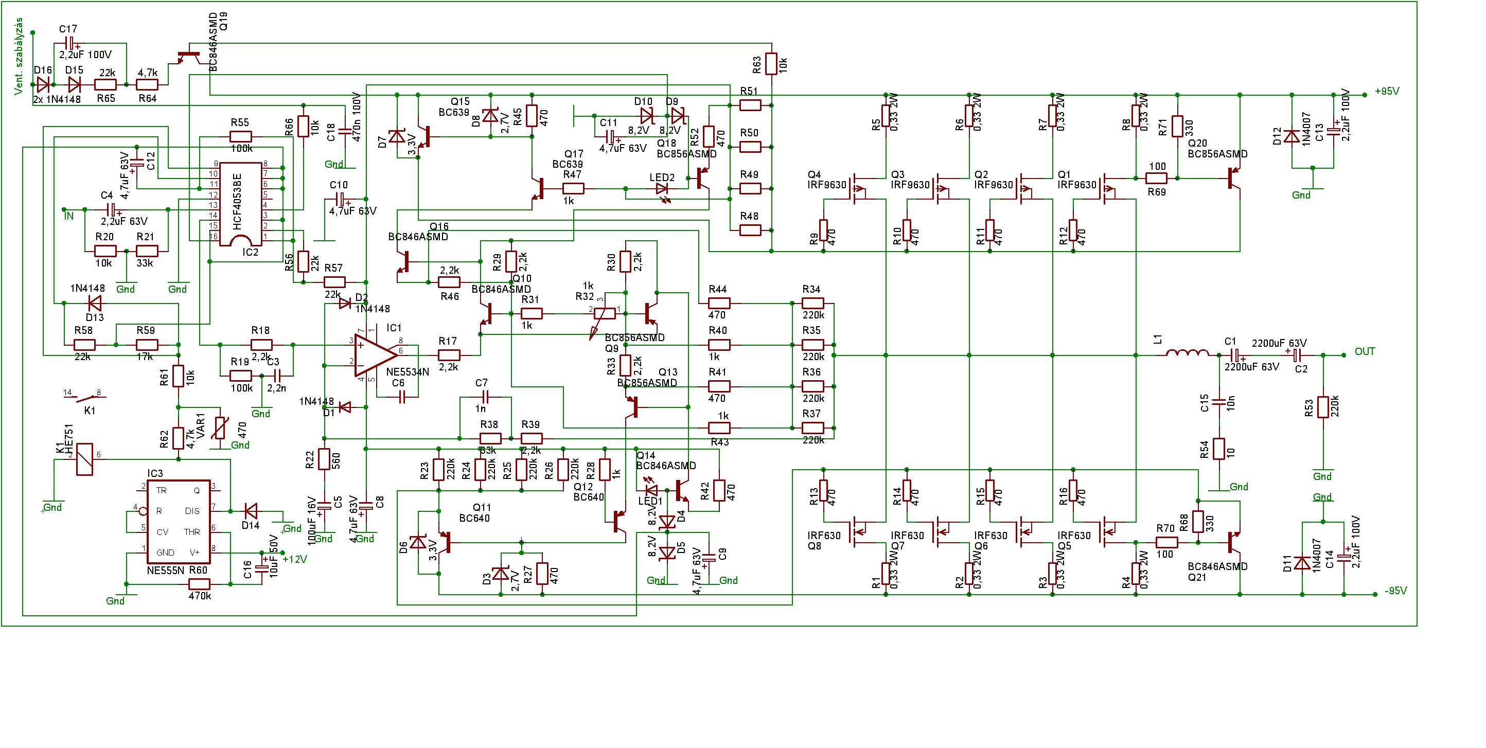 Ez a rajz nagyon kuszanak tunik es valoszinu nem is jo (persze lehet hogy tevedek, csak gyorsan atfutottam). Viszont nem hinnem, hogy kapcsolasi rajzok alapjan barki meg fogja tudni allapitani 2 erositorol, hogy melyinek jobb a jel-zaj viszonya, melyiknek mekkora a kivezerelhetosege 100kHz-en (egyebkent minek a nagy kivezerelhetoseg 100kHz-en