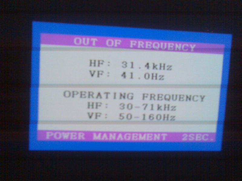 Ezt a monitor írja ki. Az a baj, hogy a gép nagyon kis képfrissítési frekvenciát használ, amit a monitor nem képes feldolgozni. Lehet, hogy videokártya-hiba van a háttérben.