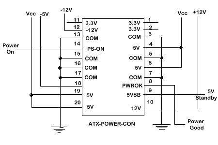 +3,3V narancs max 10W +5V piros max 10W +12V sárga max 15W +5v vsb bíbor max 5W -5 fehér ha van 1W -12v kék 1W Indításhoz zöld a feketéhez. Oda kel figyelned a zárlat elkerülésére mert nem biztos hogy a védelem működik már ha van. Sok sikert