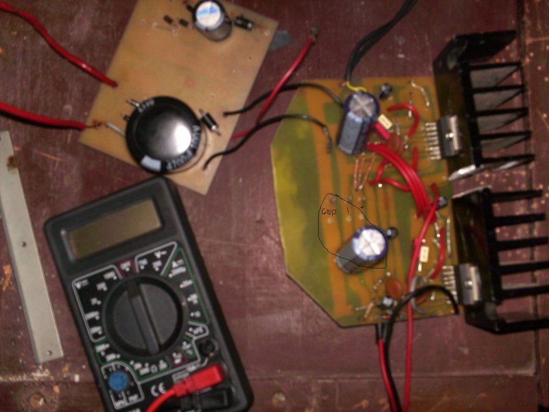 A házra testeled v táp minusz v 220 föld ezeket probáltam, de nem jo mert torz a hangja. Ha a pwrgnd nincs beköve addig tisztán szól még a 2200µF/50v kondi fel van töltve.