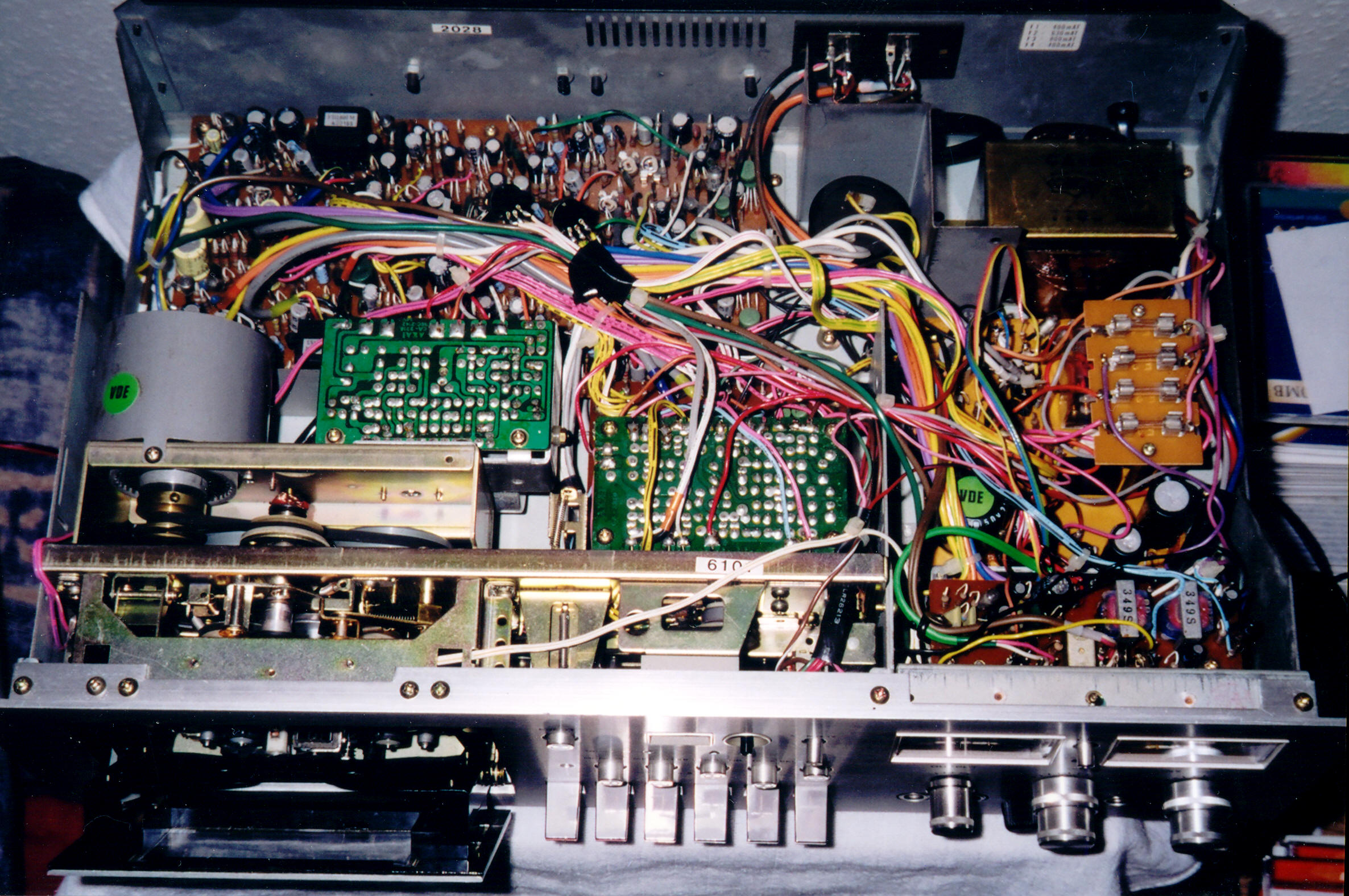 Nekem talán a legtöbb deck-em egyszerre 3 volt. Két AIWA és egy AKAI csf-210. De akkor engedjetek meg egy-két képet a mostani GXC-740 emről. Ez bizony csak 3 évvel fiatalabb nálam. Idén ünnepli a 34. szülinapját. Minden alkatrész - kivéve a szíjat és a görgőket, valamit a nem általam átalakított előmágnesezés finom szabályozót - eredeti benne. Nézzétek meg a motor méretét...olyan nincs, hogy valami ne forogjon.