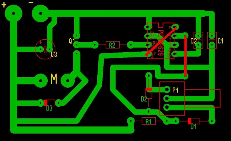 Okés, köszi szépen. Viszont egy valamit nem értek. A vonal amit az IC 7-es lábából a D2 csatlakozásába húztál, azt csak úgy íveljem oda az IC lábától egy vezetékkel? Am az IC 7-es lábából kivezető út, és a végén a csatlakozási pont össze van kötve /a rajzon ez nem látszott eddig mondjuk.../ az alatta lévő úttal. A mostani képen tehát a teljes valóság van, a piros vonalak a vezetékkel való hidalások, amikkel teljes a kapcsolás. Mit csináljak az utakkal amin áthalad a vonalad?