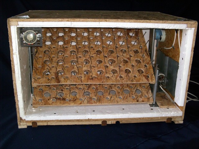 Persze. Szögvasból, vaslemezből, meg hegesztődrótból csináltam egy forgató szerkezetet, ez végülis rögzíti is a tojásokat. Természetesen kivehető a dobozból. Lemerült az elem a fényképezőmbe és nem tudom feltölteni a képeket, de holnap megmutatom mivel a képek többet mondanak.