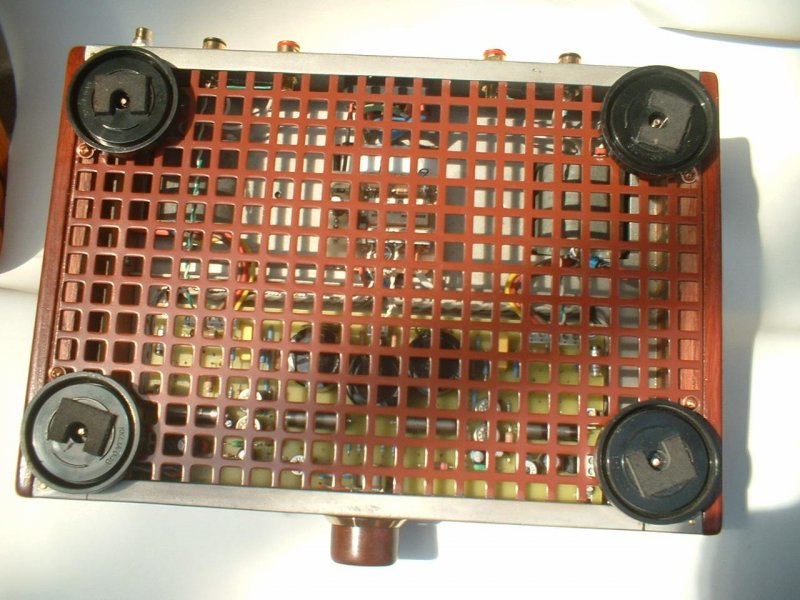 Most készülő erősítőm sárgaréz lemeze alatt 8mm rétegelt lemez van és ebbe távtartóval , sima facsavaros a nyák felfogatása . Foglalatok kivágása a fa lemezen úgy lettek kialakítva , hogy beleférjenek , így a csövek közel a fedél szintjében helyezkednek el .