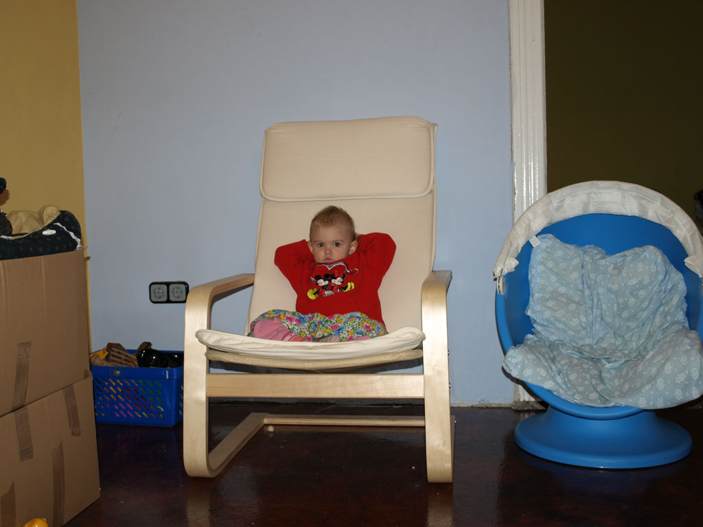 Filmet nézünk a lányommal. Én ülök az ő székében, ő meg az én székemben.