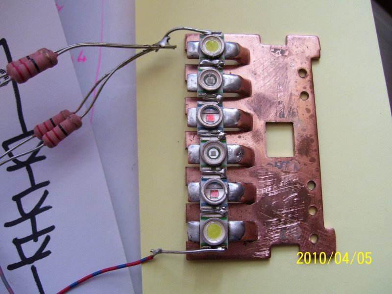 én a csipkedes 1 W-os ledeket raktam fel réz lemezre , ami vmikor hütöbordaként szolgált .
