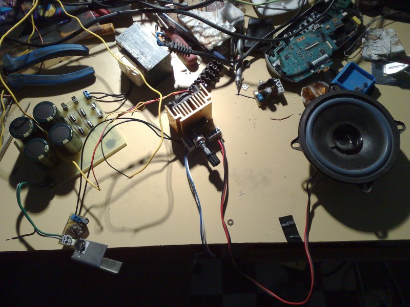 Gondoltam felrakom az erősítőm. A táp nem éppen ehhez az erősítőhöz készült, de már nembánom, hogy ehhez a 8560Q-val készült kapcsoláshoz használom, mert szépen leadja a teljesítményt. Mivel a fesz. nagyobb mint kellene ezért stabilizátorral beállítva a megfelelő feszt. kapja az erőlködő.