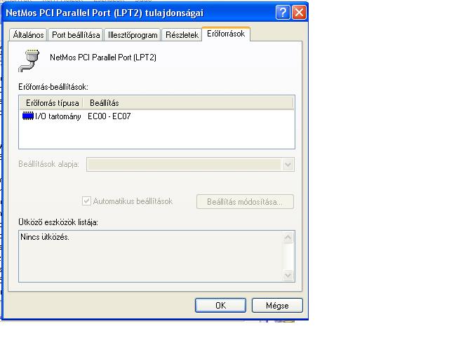Port kiválasztása gombbal. Meg kell adni a port címét. Ezt az eszközkezelőben lehet megnézni.