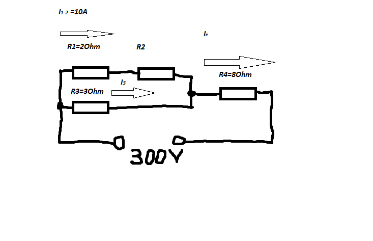ennyi az egész:Ie= U2/R3+I2 = (300-U2)/R4 U2 re rendezve U2= (300-I2*R4)/(R4/R3+1) U2= (300-80)/(8/3+1) = 60V a többi már egyszerű kirchoff meg ohm TV.