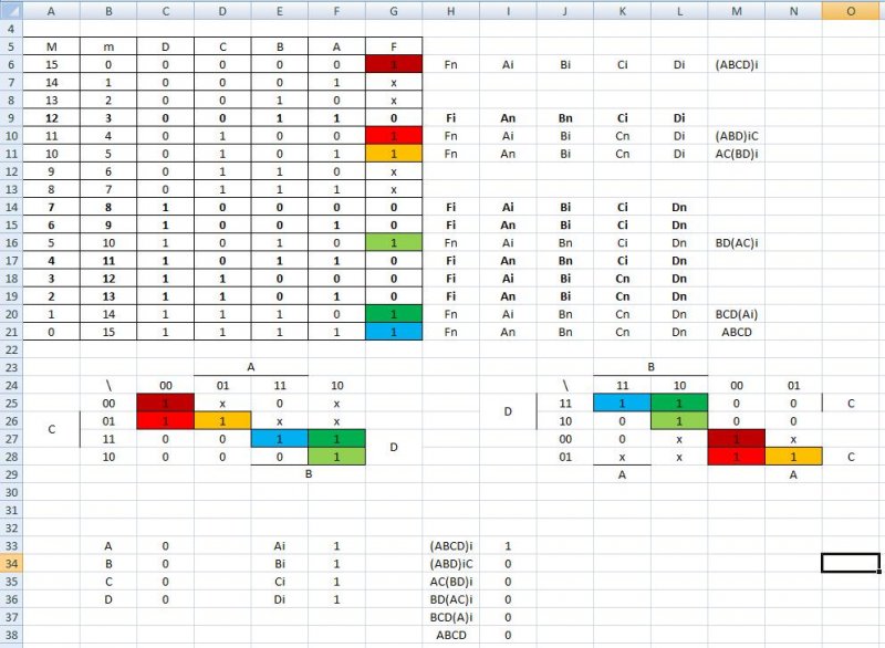 A kis i azt jelzi, hogy a bementi "jel" (ami zárójelben van) inverterével számolunk , azaz a 0=>1 az 1=>0 (ABCD)i + (ABD)iC + AC(BD)i + BD(AC)i + BCD(A)i + ABCD Le is ellenőriztem, és minden kijött, ahogyan kell. Azt nem tudom, hogy lehet itt valamit egyszerűsíteni?