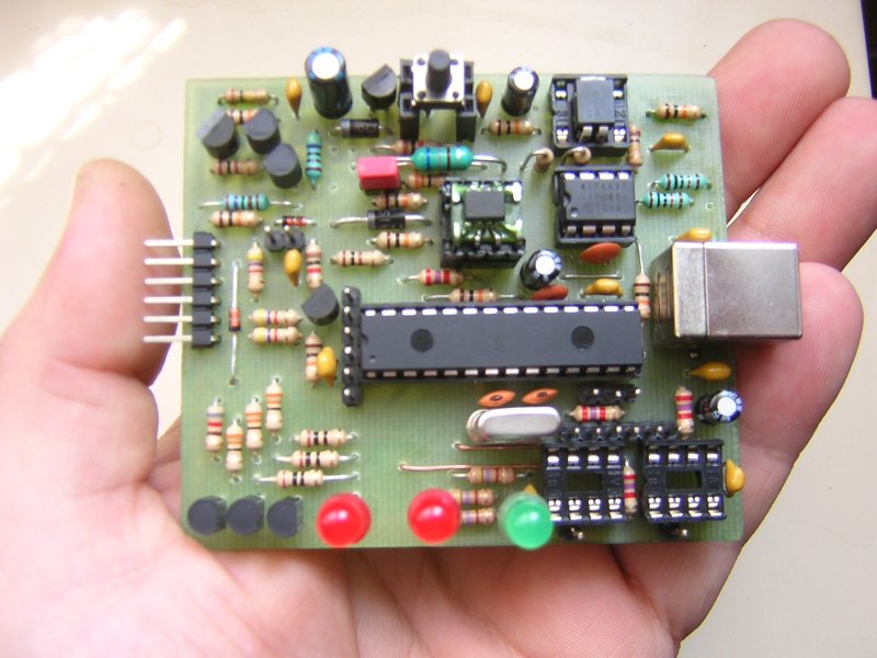 Ez az általam nyomtatott furatszerelt klón egy újabb (szépen kivitelezett) példánya... Az eredeti kapcsolási rajz szerint - módosítások az alkatrész helyettesítés és a bemérés megkönnyítésére történtek. A Vdd-t szabályozza 2.50V-ig. Ha valakinek szüksége lenne rá, még a Program and Go funkcióhoz szükséges memória (a gyári kapacitáshoz képest 4-szeresre bővíthető módon) is rajta van. Nem kell beültetni, csak ha kihasználja valaki ezt a funkciót...