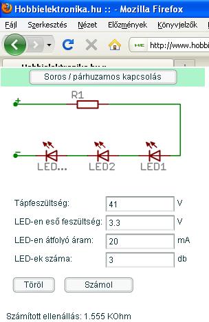 Az lenne a problémám,hogy nemrég az egyik ismerősömtől kaptam egy trafót ami 41 voltot adott le terhelés nélkül egyenfeszültségben és rákötöttem 4db zöld 3,3V-os ledet párhuzamosan (tehát számításaim szerint egy 0,08A-es 3,3V-os terhelést)és egy kb.2w-os(méret alapján) 1Kohmos ellenállással(mert ha tápfeszből kivonom a 3,3Vot akkor marad 37,7V amit elosztottam 0,08Val ami 471,25 ohm,de biztonság kedvéért egy kilosat raktam bele) ,de amint bekapcsoltam elkezdett füstölögni az ellenállás majd nagyrészt megpörkölödött a leddel együtt.