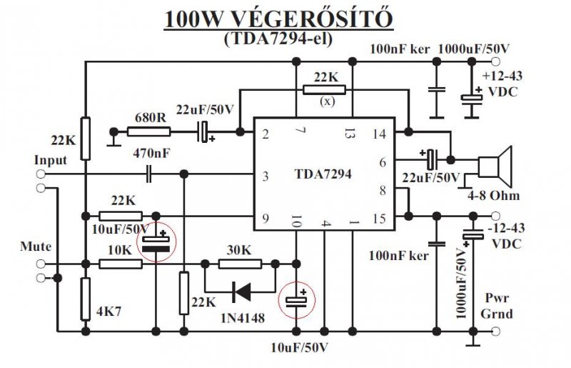 A ki- és bekapcsoláskor keletkező koppanások csökkentésére elég, ha a mellékelt kapcsoláson, a 9-es és 10-es lábakon lévő 10µF-os elektrolit kondikat nagyobbra cserélem?