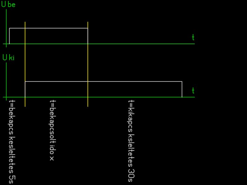 Van egy ledünk, meg egy kapcsolónk, ha a kapcsolót bekapcsoljuk, akkor a lednek késleltetve kéne bekapcsolni 5s, (ha a bekapcsolás ideje nem éri el a bekapcsolási késleltetés idejét (pl. csak 3s), akkor meg nem kéne elinduljon a program)