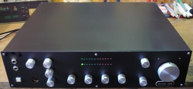 Eléggé régen irtam ide , de megint egy olyan szerkezet amit én csináltam .Igaz ez már lassan inkább a muzeális topikba illene, ez ugyanis kereken 20 évvel ezelőtt készült ! Annak idején még képek nem készültek róla ,most csak csupán javításra hozták vissza . Azóta még a doboz fed lapja le sem volt véve , hát hiába akkor még nem igen voltak hamis alkatrészek ! Nos szóval ez egy fekete dobozos korszakomból származó Quad 405. Ami az akkori megrendelő kivánságainak megfelelően készült ,