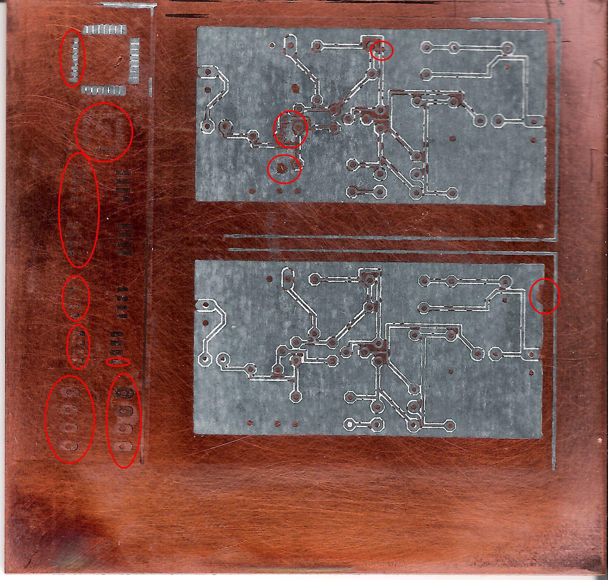 Csúnyán nyomtat a nyomtatód, lehet nem látod szabad szemmel, de néhol vékonyabb, máshol meg vastagabb a festék. Levilágításkor van ahol már túl van világítva van ahol meg pont jó. Megoldás: vagy használd dupla rétegben a maszkot, vagy cserélj/tisztíts fejet.