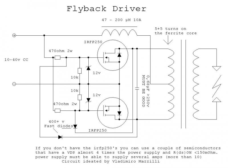 Régi tIpusu trafókat nem fogsz tudni szórabIrni feedback-es(vissza csatolt) rendszerrel,ugyanis valamelyest rosszabb a hatásfokuk mint az újjabb kialakItású egyenirányItott sorkimenőknek,úgy érhetsz el velük valami eredményt,ha a meghajtó tranyókat irányItod,esetleg még ZVS-el is meghajthatod,csak ott FET-ekre van szügség,legalábbis ezt a saját tapasztalataimból kifolyólag állItom,ugyanis régebben én is gyakran játszadoztam sorkimenőkkel,eleinte nekem se nagyon ment,mIg rá nem jöttem egy-két dologra,csakhát addig egy marék tranzisztorom bánta,később aztán megelégeltem,és áttértem a vákumcsövekre,na azzal meg bármilyen sorvégtrafóból gigantikus feszültségeket lehetett kihozni,csak itt már a trafókat kellett gyakran cserélni,néha akkora feszültség összejött,hogy a sorkimenő szekunder kivezetéséről áthúzott a vasmagra. Idézet: „...a kérdésem viszont az lenne, hogy aki épített már ilyen plazmagömböt váltóáramú sorkimenővel, az körülbelül milyen tápfeszültségről tudott szép jelenséget produkálni?” Plazmagömböt én is szerkeltem már egy 500W-os égőből,ha jól emlékszem 30-35kV körüli feszt adtam rá,egész jól nézett ki,csak rohadtul zavarta a rádiót,igaz ezt egy csöves kapcsolással oldottam meg,szóval a tápfesz eleve nagy volt. Idézet: „A 12 volt nyílván kevés lesz nekem, most hogy utánnaolvastam. Majd 35 körül néhány amperrel ”Miért is lenne kevés,ép ellenkezőleg 12V-al nyugodtabban ki lehet kIsérletezni dolgokat,ugyanis a tranyók nem szállnak el olyan könnyen mint nagyobb fesznél,sőtt én először mindig 5-6V-on próbálom ki és ha minden oké,csak úgy növelem a feszt a szügséges nagyságig,a lényeg az egészben,hogy erős legyen a táp.Épp tegnap én is összedobtam egy együtemű rendszert a rovar csabdámhoz,most a tápfesszel 16V-nál tartok,de le fogom csökkenteni mert már Igy is megvan a 25kV. Üdv!