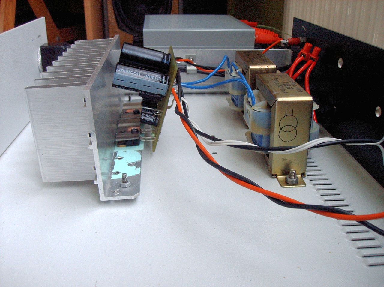 Na csináltam egy nagyobb teljesítményű verziót, 28V táppal, 40mA nyugalmival, bd243-244 -el. Ez már bulizós hangerőt is tud...