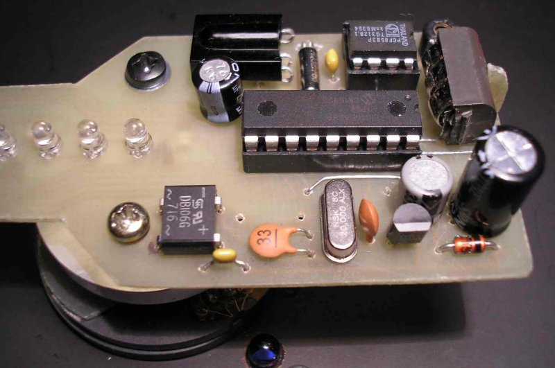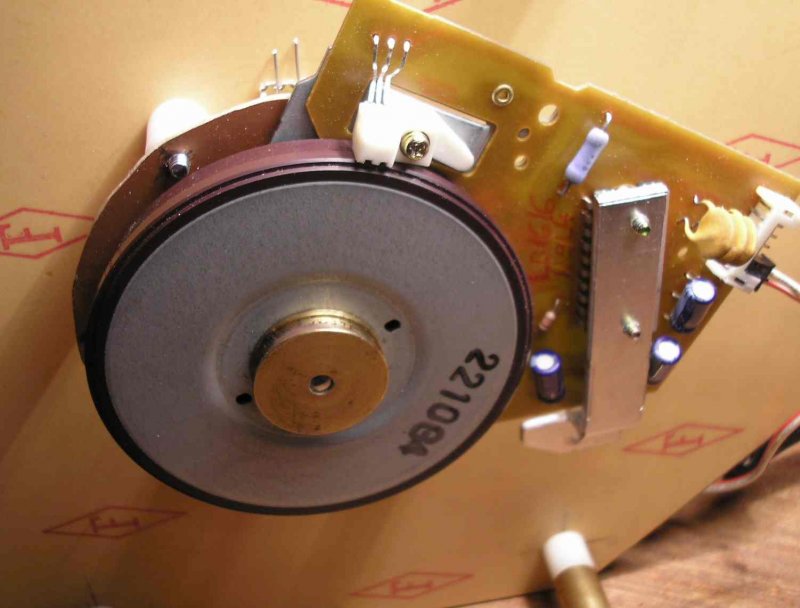 - Nem sok remény van a 1622-es IC-vel szerelt motor beállításához. Nincs más lehetőség szerintem, ez a motor elektronika meghibásodott. A 13403-as IC-vel szerelt motor lehet hogy jó, szerelj rá alumínium hűtőlemezt. Az utóbbi capstan motoromon, nekem is "gyárilag" van rajta ilyen hűtés, azt még tovább kell növelnem. Valóban van LB1887-es IC-vel szerelt motorom, de az nekem sem indult még el. Mindenképpen szükséges lenne hozzá adatlap, de az is lehet, hogy a próbákkal már "kinyírtam". - Most néhány képet felrakok még az elkészült propeller II. már majdnem teljesen kész változatáról. Tulajdonképpen az ezzel szerelt motor is nagyon jó lett, rendkívül csendesen dolgozik. Az RTC-hez a telep itt is 4.5V-os lett, egy (öngyújtóból) kiszerelt tartóval együtt. (Van olyan motorom, ami alapban nagyon zajos, annak ellenére, hogy megfelelhetne ilyen szerkezetben).