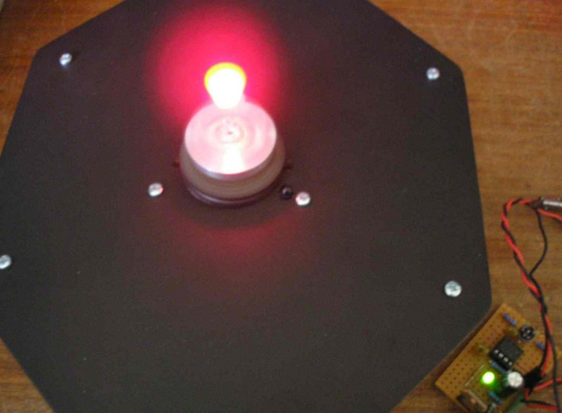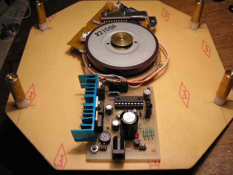 - Nem is tudom valóban kellene-e egy újabb topik ezekhez a DC/ 3 fázisú motorokhoz, egyelőre még hagyjuk ki, aztán majd ránk szólnak a moderátorok. - Annyira stabilan működik a capstan motorral felépített propeller, hogy még egy ilyen kialakítású meghajtót kellene készíteni, ha találok nagy fordulatra is képes motort, meg alkalmas fazékvasat is. Ez utóbbi lehet kisebb méretű is, csak a motortengely átférjen rajta. Az összes áramfelvétel, (1450 fordulaton), 270mA! Egy 12V/300mA-es dugasztápról járatom már harmadik napja. Ilyen kis fogyasztású propellert még eddig nem sikerült készítenem, talán a PC ventillátoros megoldásnál volt hasonló a teljesítmény felvétel. - A motor 140mA-es áramfelvétele az LM2941-el van stabilizálva, a kimenő feszültség ekkor 9.3V. Rohamosan nő az áramfelvétel a fordulatszám növelésével. 12.6V-on már 1800 fordulatnál 395mA lesz, 14.8V-nál már 600mA!, de 2000 fölött pörög a propeller, és a zaj is jelentős lesz. (Ezt csak a méréshez szükséges ideig működtettem, ekkor már veszélyesen melegszik a meghajtó IC!) - Lehet csökkenteni a magas felépítést a következő elgondolásokkal. A motor csapágyház felső szintjét az alaplappal egy síkra hozni, alul megfelelő távtartókkal. Az alsó fazékvas az alaplapra ragasztva, a propeller rögzítő eleme is jóval kisebb, ”karcsúbb” méretekkel elkészítve. Az alaplap alá kerülhetne a bázis áramköre is. Így a magas építmény már nem lenne olyan zavaró, vagy feltűnő.