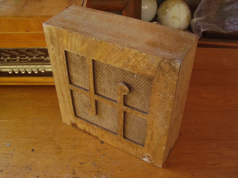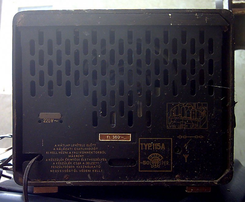 Nemrég a melléképület bontásakor előkerült ez az Orion külső hangsugárzó. Korát ítélve az 1930-as évek első feléből való. Hangszóró már nem volt benne. Ráadásul polcnak lett átalakítva és fellógatva a falra fém fülekkel (kb. az '50-es években történhetett az átalakítás). Ezért elég sok szöget húztam ki belőle. A hátlapját teljesen megette a szú. El is tört egy helyen. A többi része viszont jónak tűnik. Simán megéri restaurálni.