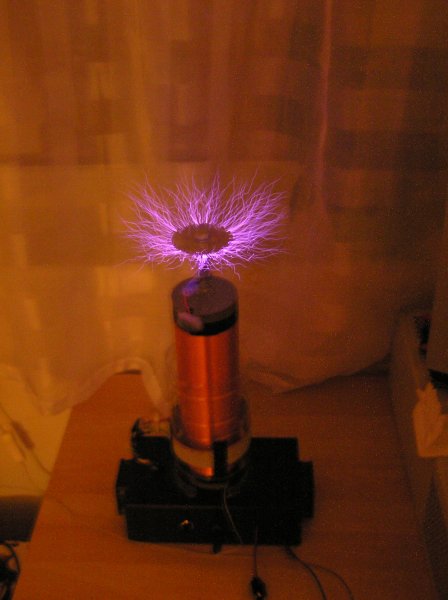 A tetőkapacitás és a szekunder túl messze vannak egymástól. Illetve én ezeket a mindenféle sufnituning tetőkapacitásokat egyáltalán nem tartom jó ötletnek, normális, toroid alakú kapacitást kellene csinálnod (erre ilyen kis méretben van rengeteg, olcsó megoldás), egyrészt azért, mert a feszültség csak ilyen szabályos test esetén lesz maximális, másfelől az ilyen rossz térerőeloszlást fogja kiküszöbölni.