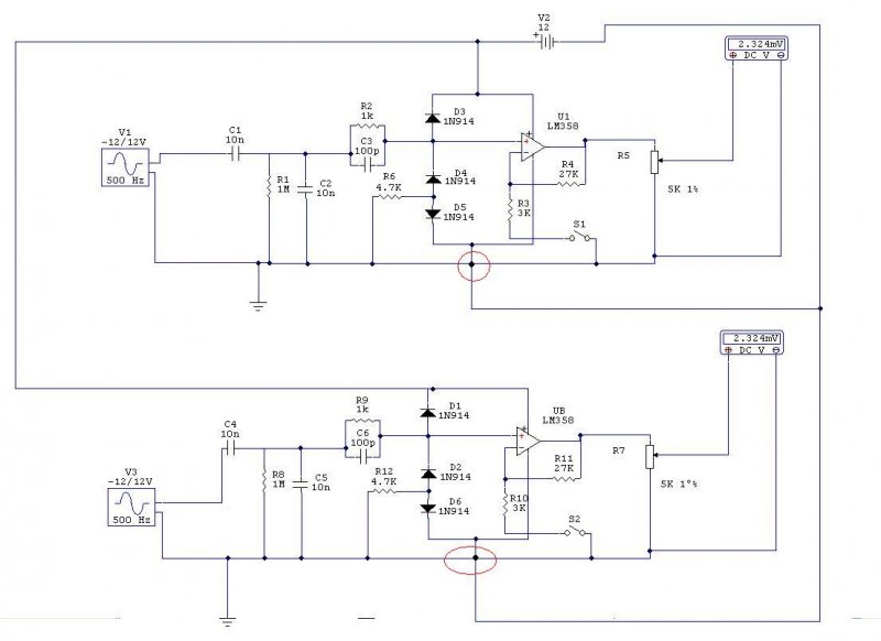 Annyit "módosítottam" hogy TL072 helyet KA358 és 1n914 helyett fr155 diódákat raktam bele (ezek voltak itthon)