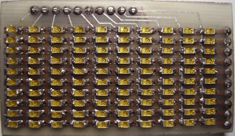 Jól néz ki egy panelon a 100 db SMD LED. Gondolom nem kis türelem kellett hozzá.