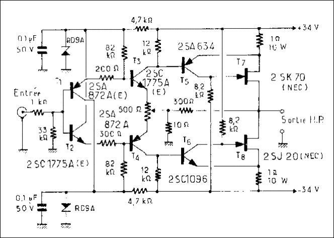 Szerintem nagyban hasonlít a két erősítő egymásra, leszámítva, hogy az enyém komplementer tranzisztorpárral működik, ezért is gondoltam, hogy lehetséges a fejlesztés. Bővebben: Link