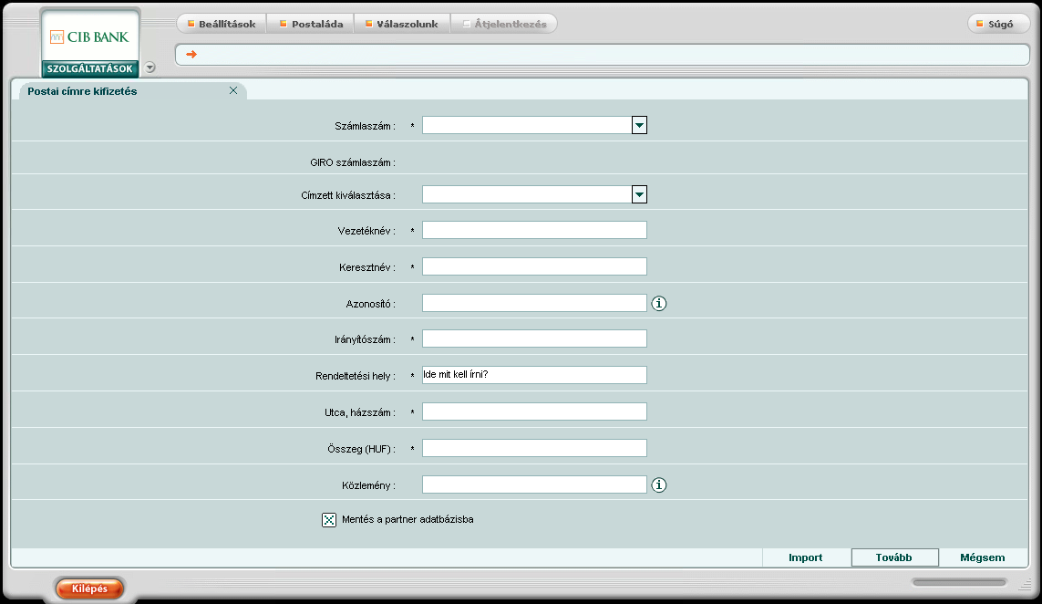 Szeretnék a bankból csekken pénzt küldeni egy címre.