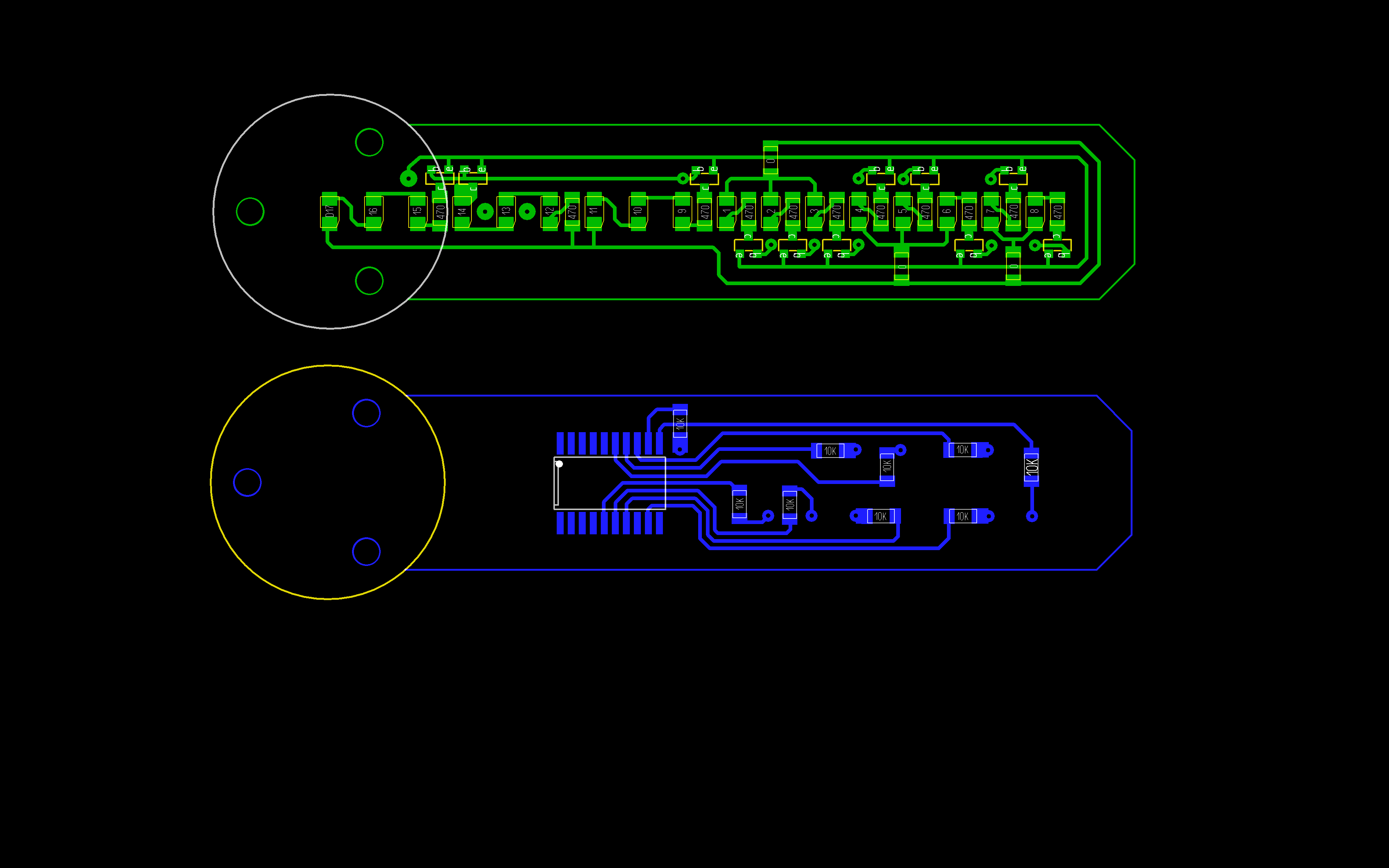 Szia! Nekem is van egy ilyen motor.. Ma nekiálltam a tervezésnek de nem sokat haladtam mert a főnök gépét raktam újra délután.. Az SMD ledeket a legnagyobb raszter-ra rakva (5,08mm) kb akkora lesz mint a 3mm-es. Kétoldalasra tervezem ez nem fog szerintem különösebb problémát jelenteni szerintem. Megtervezem a vinyómotorra mert ehhez kicsit durva nagy lenne egy videó fejmotor Sőt ezt lazán vinné a sima cikkben szereplő venti motor is mert könnyű és pici lesz. Akkor ha SMD az SSOP kivitelűre gondoltam ez rendes SMD csak nem 18 hanem 20 lába van kicsit eltér a kiosztása de árban nem drágább. Az RTC SMDSO8 tokban beszerezhető A ledeknek sem ártana 1206-os kivitelűnek lenni.. Az elemet,kondit TSP-t esetlegesen a nyákba belevágott kis részekbe helyezve szerelném az elem is lehetne valami kicsi lapos mi egy Lyukba befér a nyákon így tartó sem kell megoldjuk valami felforrasztható lemezkével. A pufferkondi lehetne egy téglalap alakú kivágott részben vagy az is SMD legyen több párhuzamosan? Próbálnám úgy tervezni,hogy szimetrikus is legyen így a kontroller lehet a ledek alatt lesz másik oldalon mert oda is kell kis súly..A puffer egyenirányítás lenne a hátsó részen meg az RTC valahol..ICSP kivezetve valahol de nem felfelé meg kiállva hanem az is egy bevágás a nyákon hol ráfér a programozó csatija. Egyenirányításnál is gondoltam azzal a hagyományos 1A-os hídra minek megint csak besüllyesztve lenne a beszerelése. A timmeren nem gondolkoztam még. Egy teljesen analóg fényerőszabályzás mi csak a fényerő változásra vált át éjjszakai/nappali üzembe azon gondolkodom csak kéne egy kis fet mi alaplapokban is van az nagyon jó méret..Aki ezt a funkciót nem szeretné csak át kell forrasztani a lábakat alkalmas 16F628A,16F648A kontrollerekhez.. A tervezést az eredetitől eltérően a 886-os verzióban alkalmazott "földelt" emiteresen oldom meg ez nem igényel semmi extrát csak a tervezésen múlik. Most ezek jutottak eszembe hirtelen tervezéskor persze lesznek egyebek is. Holnap este folytatom a melóhelyen mivel ezt a projectet most csak külön csinálom,hogy legyen terv. Szóval javaslatokat ötleteket várok ha lehet holnap 17 óráig mert utána melózom és ha ráérek ott tervezem (sajnos a netet nem érem el a melóhelyen már)