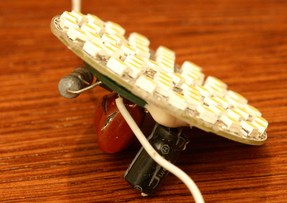 Ismeri valaki a képen látható 1W-os Power Ledeket, vagy hasonlókat melyek ekkora feszültségen üzemelnek? A három led 165V-ot kap soros kapcsolásban.