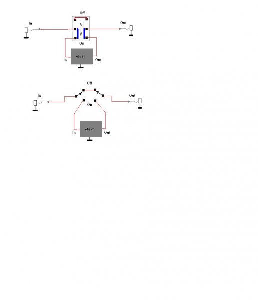 LED nelkul .Az atkapcsolo mobil reszeire jon a bemeno illetve a kimeneti jack aljzat , az allo erintkezokre az athidalas valamint a kapcsolas bemenete es a kimenete.Vigyazni kell hogy ne csereld ossze a kapcsolas bemenet/kimenet bekoteset.