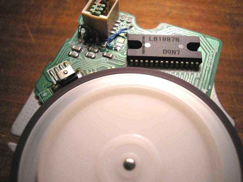 - A motor nyákáramkörének tanulmányozása volt a megoldás. Csak a csatlakozósort kielemezve, a GND ”vastag” vezetősáv, a Vcc1 is elég széles vezetősávval van kialakítva a többiekhez képest. A plusz bemeneti pontnak van köze a tekercsekhez úgy, hogy egy-egy ”félvezető átmenetet” lehet közöttük mérni. A Vcc2 a Hall elemeknek is ad tápfeszt, és a logikai áramköröknek is. Más hasonló áramkörök megfelelő kialakítása is könnyítette a lényeges bekötési pontok meghatározását. 5V-al kísérletezve és folyamatosan mérve meg lehetett találni minden szükséges bekötési pontot. - Most az új SMD propeller meghajtásához, egy CD-ROM motort is el tudtam indítani a meghajtó IC adatlapja alapján, ahol a ”saját” alaplapján végeztem átalakításokat. Az első lépésben az S/S, (Start/Stop) vezetősávot átvágtam, mert magas szintre kellett húzni, (ekkor már bekapcsoláskor felpörgött), majd megkeresni az engedélyezési pontot, itt is hasonlóan jártam el Azóta pörög a motor folyamatosan. Mindez, két db 2.2K felhúzó ellenállással történt. Erről néhány felvétel. (Ezek a megoldások a winchester motoroknál is használhatóak lehetnek.)