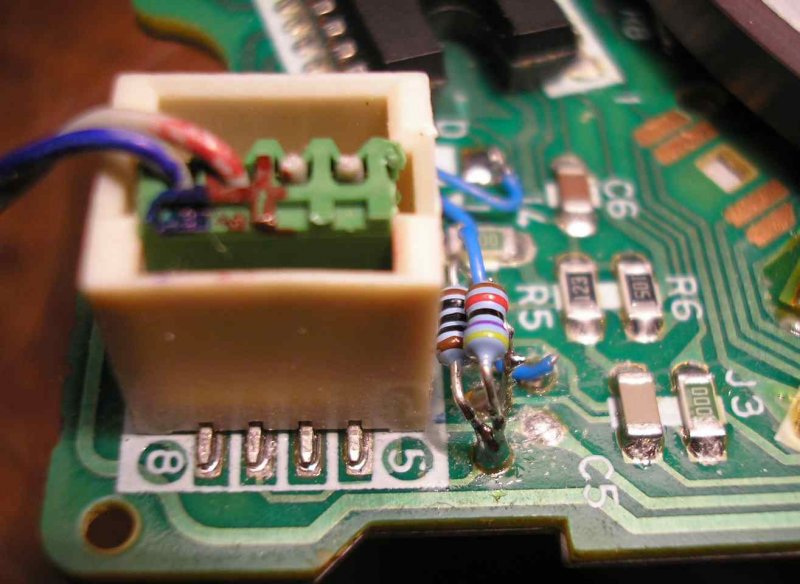 A 8 pólusú csatlakozó 6. pontja kimaradt, ez a kontroll bemenet, vagy (szervo /2.5V!), ide kellett kötni egy 47K-220K ellenálláson a plusz tápot. A bekötésekről két kép, elnézést.