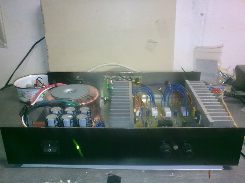 Én kb 5 éve építettem meg ezt a végfokot (TDA7250, MJ11013-MJ11014 tranzisztorpárokkal) ami így 2x130W-ot tud 4Ohm-on. De nem ez a lényeg, azóta tökéletesen működik és szerintem nagyon kicsi alapzaja van. (csak közvetlen közelről lehet egy kis sistergést hallani a hangszórókból). Van neki egy 300VA es toroidja, összesen 4db 10eµF kondi (oldalanként 20eUF) és +-40V-os a táp. Ezen kívül sem előerősítő sem más nem volt rá kötve 1 sztereó potin kívül. Most kicsit modosítani szeretném egy előfokkal, de megrekedtem, mert amint kiveszem a potit és direktbe rákötöm a jelet (még előfok nélkül) elkezd erősen és fülsértően búgni ami már majdnem tönkre is tette a 2 magassugárzómat. (kicsit szaglott) Ezt csak abban az esetben teszi ha a végfok panel bemenetéhez érintek 1 viszonlag hosszabb kábelt. Viszont visszakotottem a potit és ez a jelenség megszűnt.