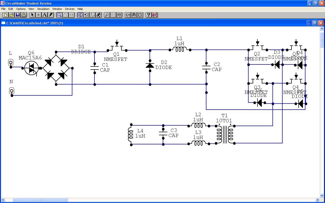Valószínű az az ellenállás miatt nem leng el az egész . Ez a rezonáns kör csillapítása. ( terhelése ) Csak ha te egy ellenállást teszel be árammérésre, akkor az egész szimuláció már máshogy fog működni. ( magyarázathoz így is jó.) Lehet, hogy "matching induktornak" hívják az indukciós "nyelven", de ez nem mond semmit annak, aki még nem foglalkozott hevítővel. Aki csak az alapjait tudja, ezt nem érti. Az általános neve az, hogy "soros fojtótekercs". Azért soros, mert átmegy rajta a terhelőáram. Akkor lenne párhuzamos, ha a híd által generált négyszögfeszültségre, vagy mint jelen esetben is van, a kondival van párhuzamosan kötve. Mint ahogy az is fura volt nekem, hogy "munkatekercs". Bár ezt egy pillanat alatt ki lehet találni, mire való... Na ezért jó a kapcsolási rajz...