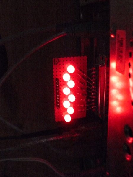 Tegnap lettem kész az első LPT-s LED sorommal. Készítettem hozzá egy VB-s progit, amivel tudom kapcsolgatni a 8 ledet. A ledekkel párhuzamosan van kötve egy tüskesor aljzat, ahová tetszőleges fogyasztókat köthetek.